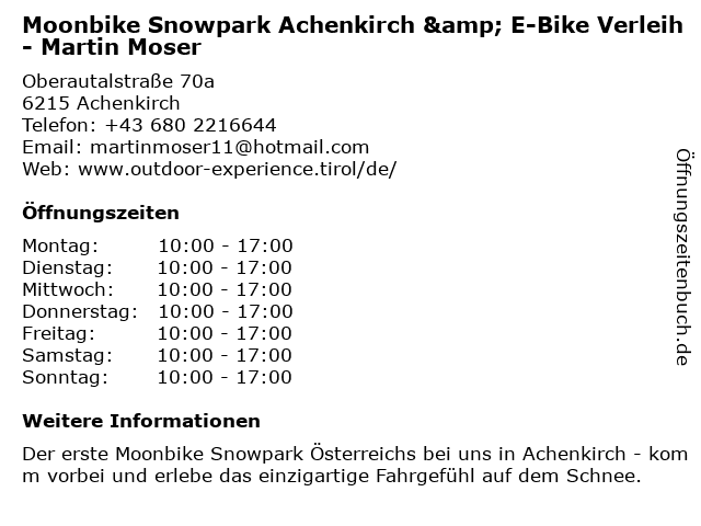 | Montag | 10:00-17:00 |