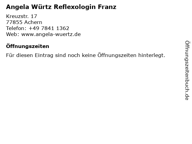 Branchen & Suchbegriffe zu Angela Würtz Reflexologin Franz:angela, franz, reflexologin, therapeut, würtz |