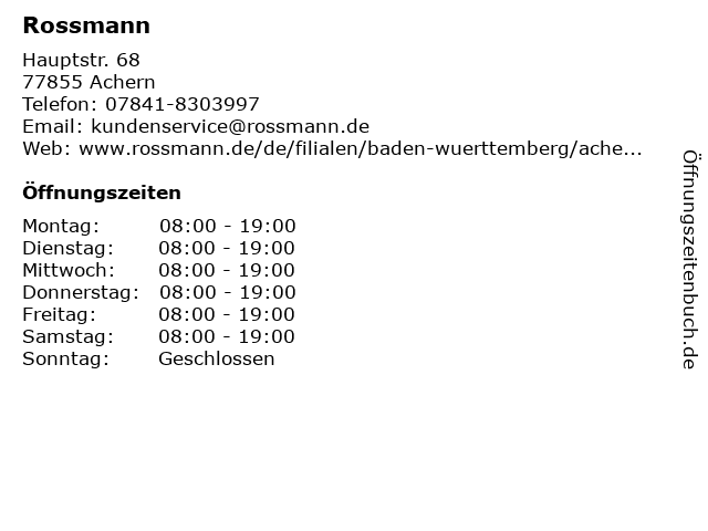 | Öffnungszeiten Rossmann in Achern anzeigen | |