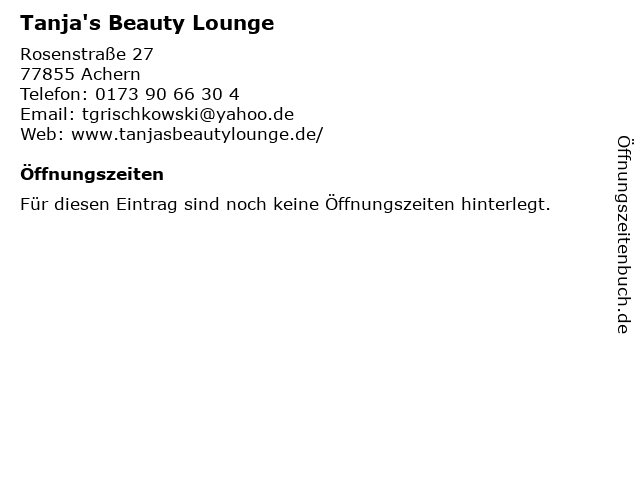 | Telefonnummer Tanja's Beauty Lounge in Achern (0173 90 66 30 4) anrufen | |