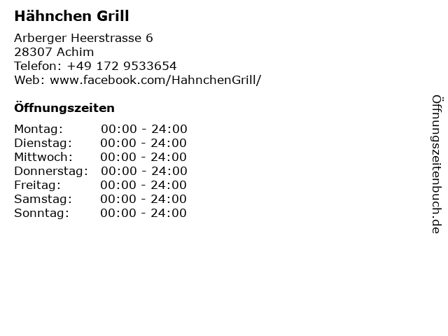 | Adresse Hähnchen Grill in Achim anzeigen |