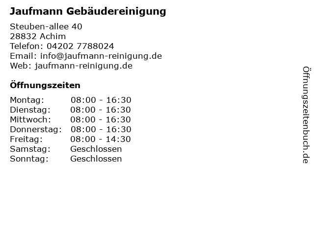 | Öffnungszeiten Jaufmann Gebäudereinigung in Achim anzeigen | |