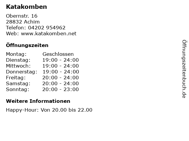 | Öffnungszeiten Katakomben in Achim anzeigen | |