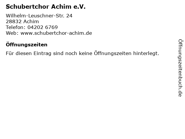 | Öffnungszeiten Schubertchor Achim e.V. in Achim anzeigen | |