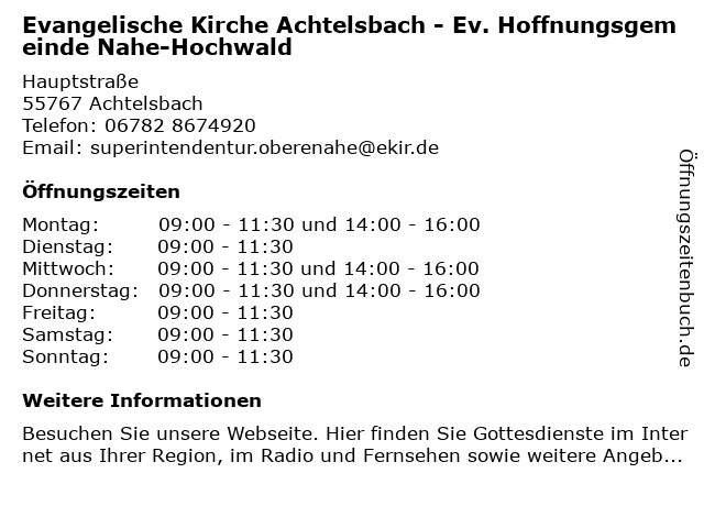 Branchen & Suchbegriffe zu Evangelische Kirche Achtelsbach - Ev. Hoffnungsgemeinde Nahe-Hochwald:achtelsbach, ev., evangelische, hochwald, hoffnungsgemeinde, kirche, nahe |
