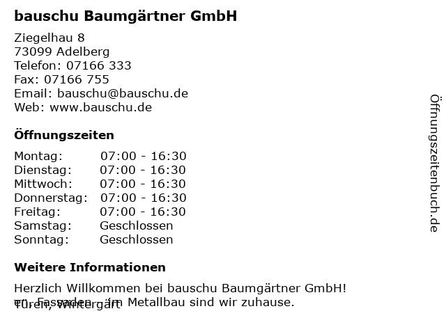 | Adresse bauschu Baumgärtner GmbH in Adelberg anzeigen |