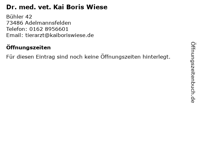 | Dr. med. vet. Kai Boris Wiese anrufen | |