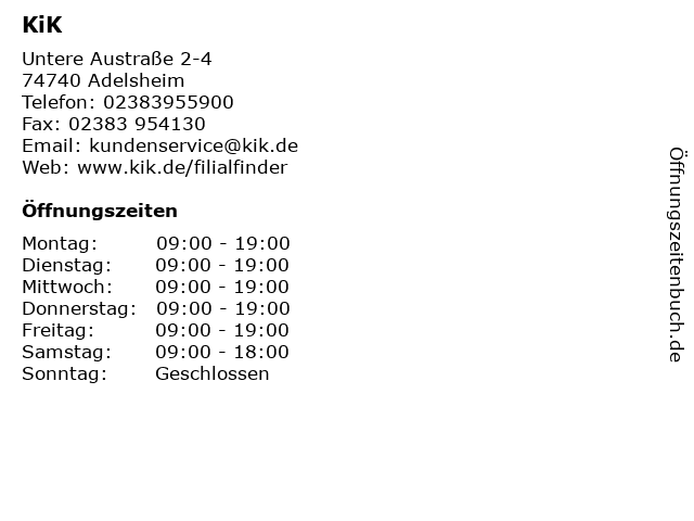 | Öffnungszeiten KiK in Adelsheim anzeigen | |
