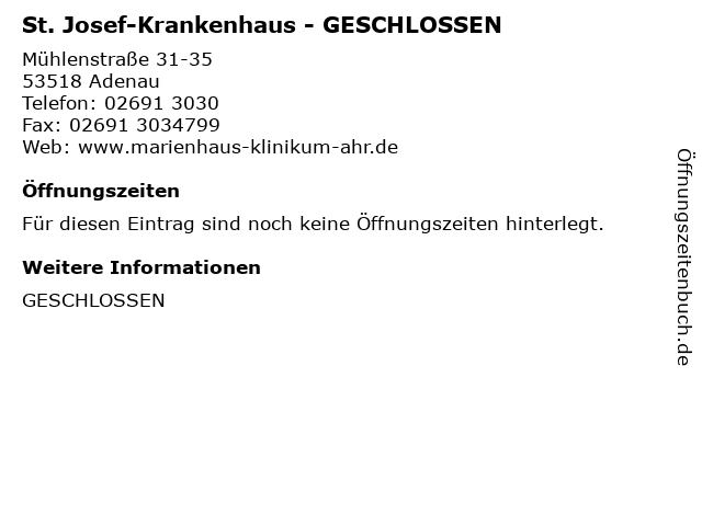 | St. Josef-Krankenhaus - GESCHLOSSEN anrufen | |