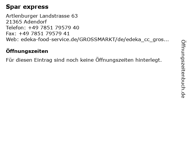 | Telefonnummer Spar express in Adendorf (+49 7851 79579 40) anrufen | |