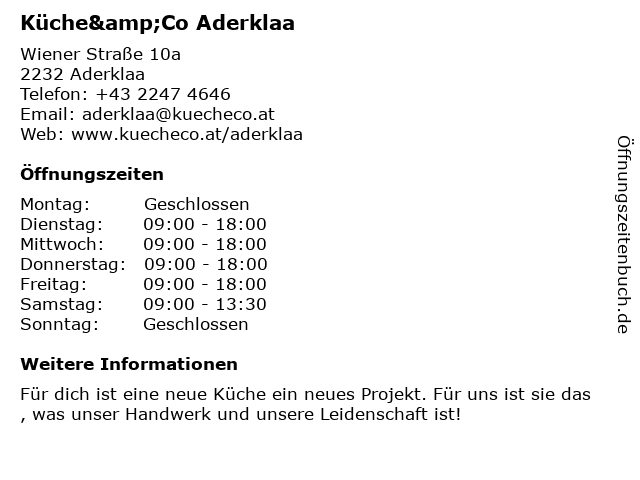 | Öffnungszeiten Küche&Co Aderklaa in Aderklaa anzeigen | |