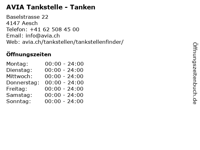 | Öffnungszeiten AVIA Tankstelle - Tanken in Aesch anzeigen | |