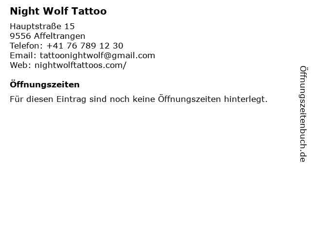 | Öffnungszeiten Night Wolf Tattoo in Affeltrangen anzeigen | |