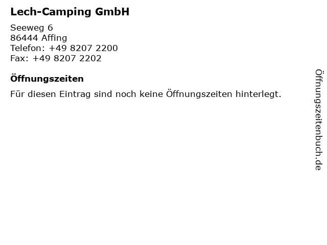 | Öffnungszeiten Lech-Camping GmbH in Affing anzeigen | |