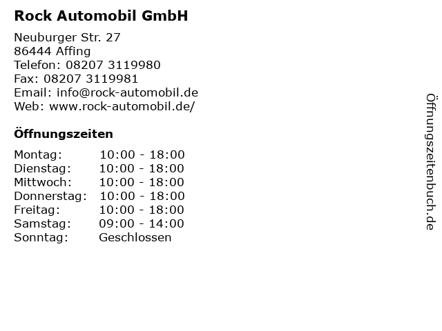 | Öffnungszeiten Rock Automobil GmbH in Affing anzeigen | |