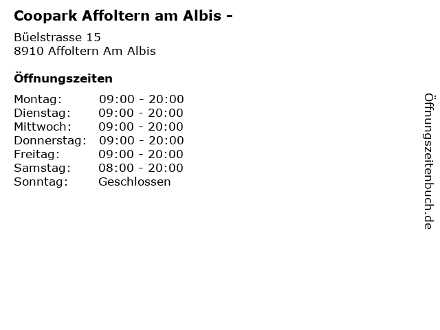 | Öffnungszeiten Coopark Affoltern am Albis - in Affoltern Am Albis anzeigen | |
