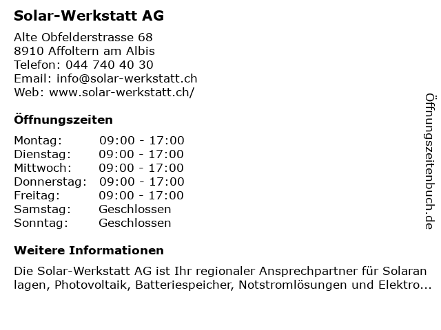 Branchen & Suchbegriffe zu Solar-Werkstatt AG:akku- und batteriefachhandel, solar, unternehmen für solarenergie, werkstatt |