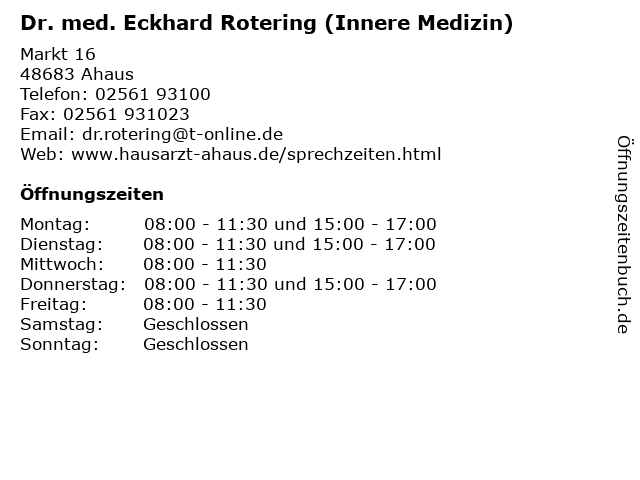 | Öffnungszeiten Hausarztpraxis Rotering & Torka in Ahaus anzeigen | |