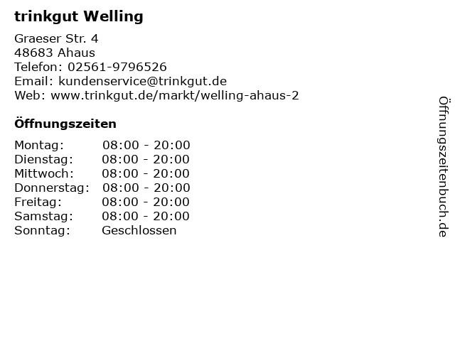 | Öffnungszeiten trinkgut Welling in Ahaus anzeigen | |