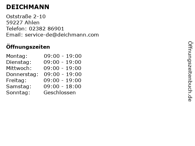 | Öffnungszeiten DEICHMANN in Ahlen anzeigen | |