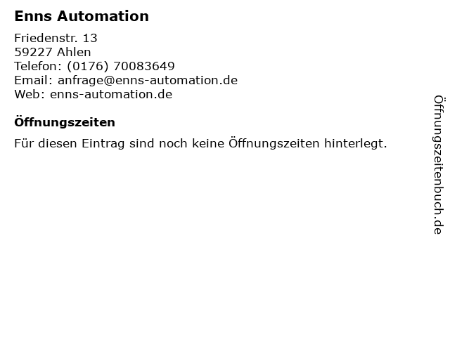 | Öffnungszeiten Enns Automation in Ahlen anzeigen | |