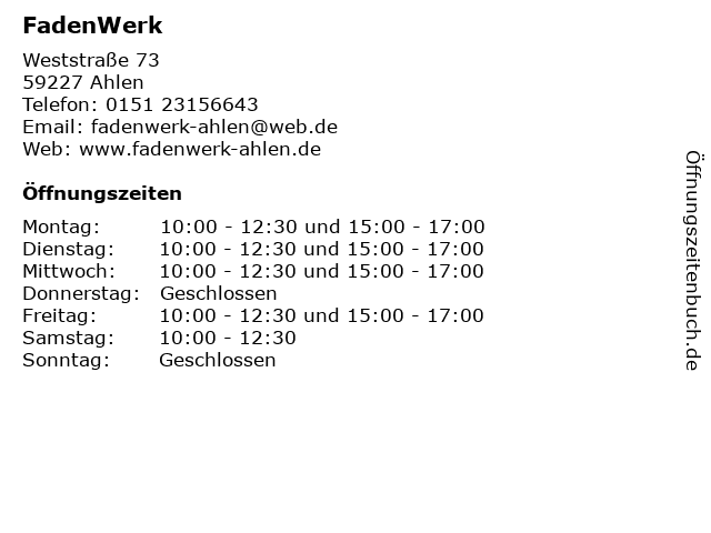 FadenWerk in Ahlen: Telefonnummer, Öffnungszeiten und Adresse
