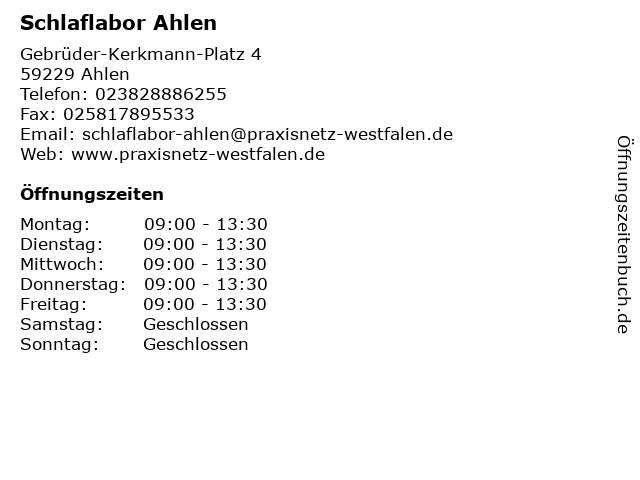 | Öffnungszeiten Schlaflabor Ahlen in Ahlen anzeigen | |