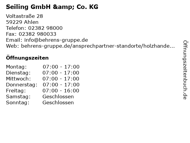 | Öffnungszeiten Seiling GmbH & Co. KG in Ahlen anzeigen | |