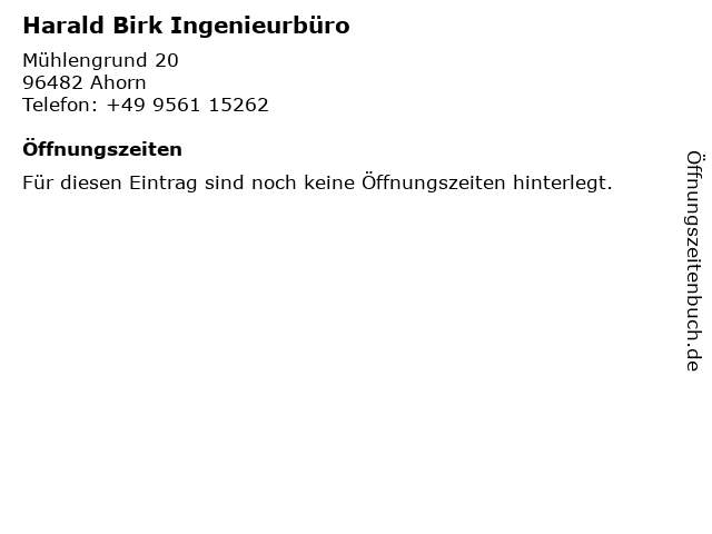 | Öffnungszeiten Harald Birk Ingenieurbüro in Ahorn anzeigen | |