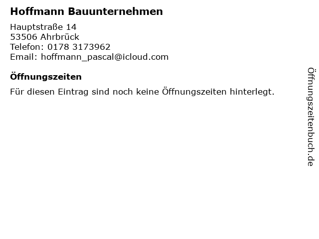 | Öffnungszeiten Hoffmann Bauunternehmen in Ahrbrück anzeigen | |