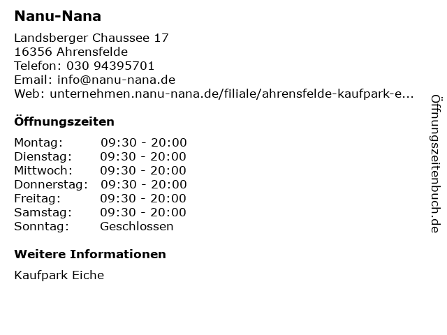 | Öffnungszeiten Nanu-Nana in Ahrensfelde anzeigen | |