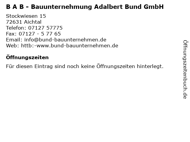 | B A B - Bauunternehmung Adalbert Bund GmbH anrufen | |