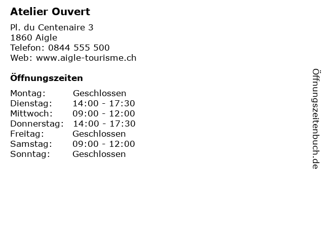 | Öffnungszeiten Atelier Ouvert in Aigle anzeigen | |