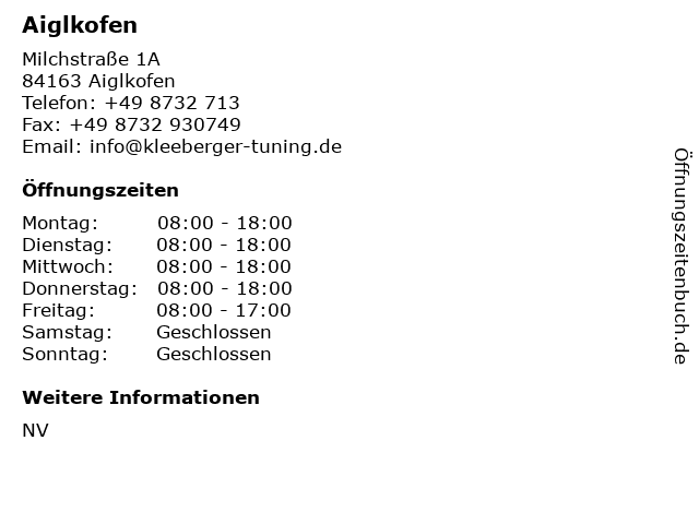 | Öffnungszeiten Aiglkofen in Aiglkofen anzeigen | |