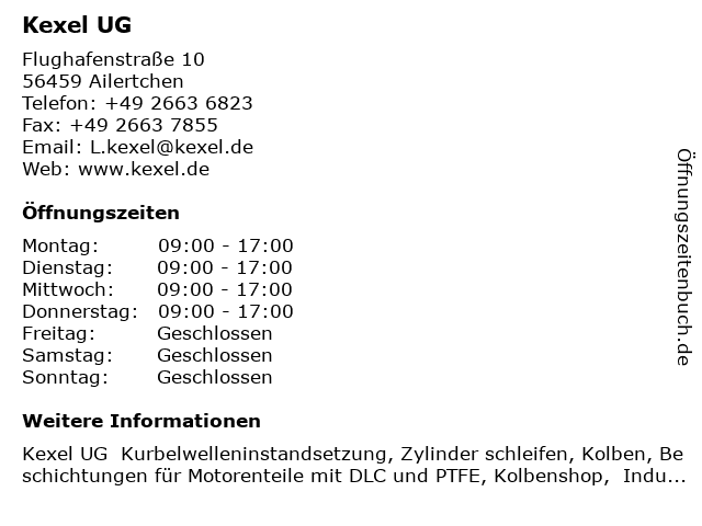 | Öffnungszeiten Kexel UG in Ailertchen anzeigen | |