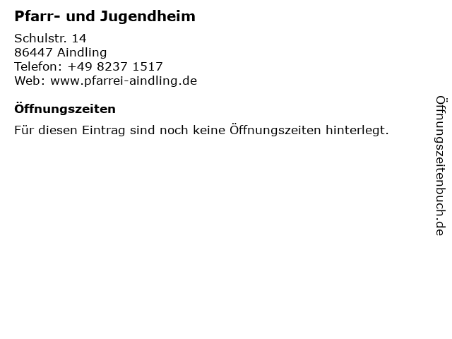 | Öffnungszeiten Pfarr- und Jugendheim in Aindling anzeigen | |