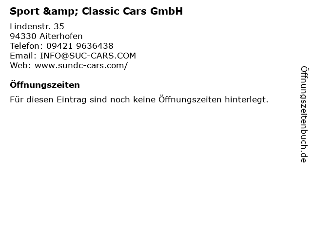 | Öffnungszeiten Sport & Classic Cars GmbH in Aiterhofen anzeigen | |