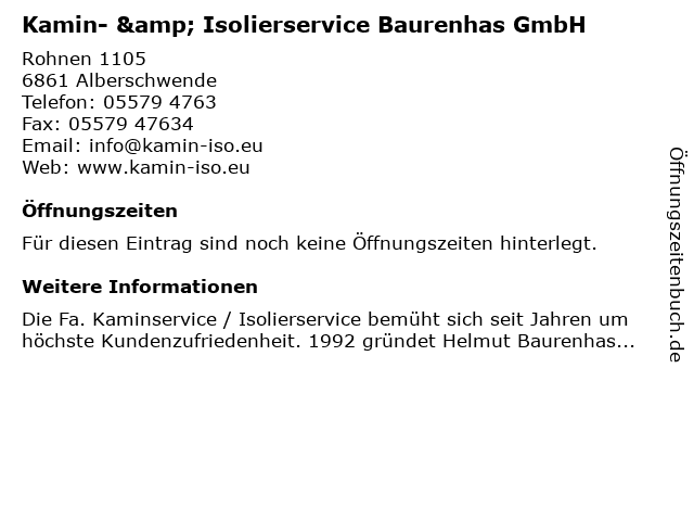 | Kamin- & Isolierservice Baurenhas GmbH anrufen | |