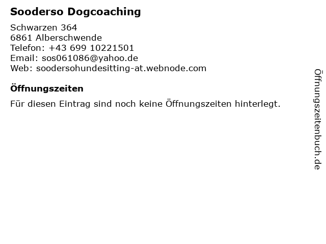 | Öffnungszeiten Sooderso Dogcoaching in Alberschwende anzeigen | |