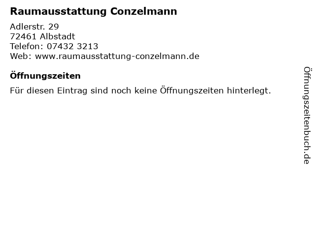 | Öffnungszeiten Raumausstattung Conzelmann in Albstadt anzeigen | |