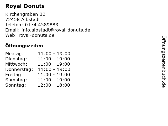 | Öffnungszeiten Royal Donuts in Albstadt anzeigen | |