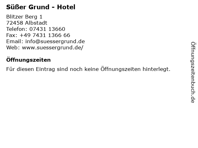| Öffnungszeiten Süßer Grund - Hotel in Albstadt anzeigen | |