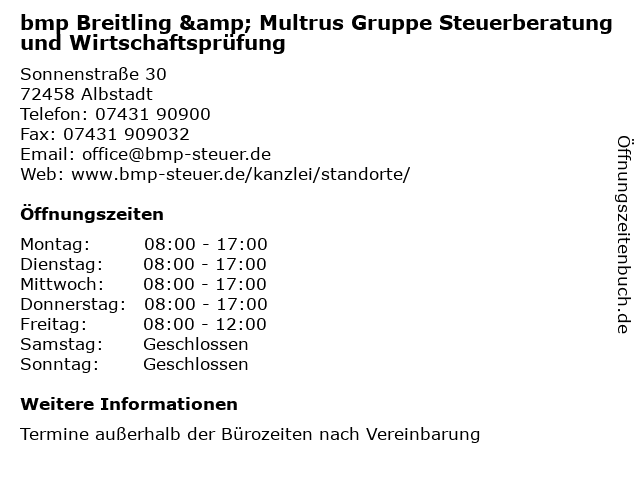 | Branchen & Suchbegriffe zu bmp Breitling & Multrus Gruppe Steuerberatung und Wirtschaftsprüfung:beck, bmp, breitling, gruppe, multrus, partner, steuerberater, steuerberatung, wirtschaftsprüfer, wirtschaftsprüfung |