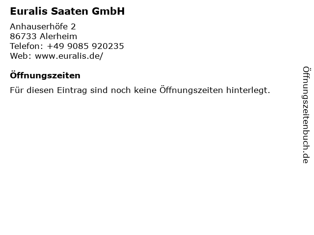 | Öffnungszeiten Euralis Saaten GmbH in Alerheim anzeigen | |