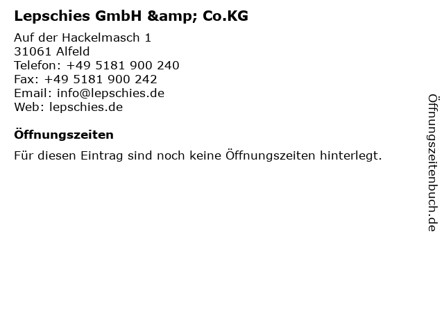 | Öffnungszeiten Lepschies GmbH & Co.KG in Alfeld anzeigen | |