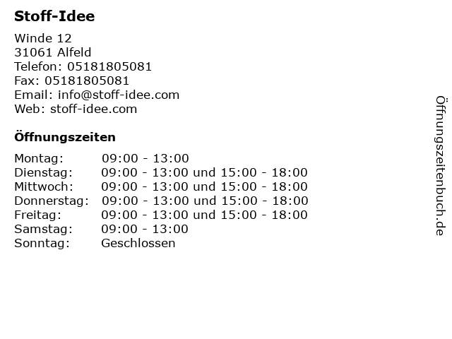 | Öffnungszeiten Stoff-Idee in Alfeld anzeigen | |