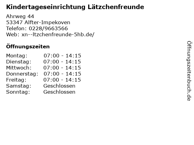 1 AWO Familienzentrum / Kindertageseinrichtung Sterntaler (Entfernung: 1,04 km) Wegscheid 23a, 53347 Alfter 2 Katholische inklusive Kindertageseinrichtung St. Jakobus (Entfernung: 1,69 km) Blechgasse 4, 53347 Alfter 4 5 Städt. Kindertageseinrichtung Roisdorf Kindergärten (Entfernung: 4,80 km) Friedrichstr. 3, 53332 Bornheim 6 |
