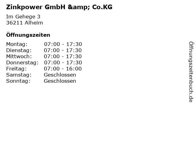 | Öffnungszeiten Zinkpower GmbH & Co.KG in Alheim anzeigen | |
