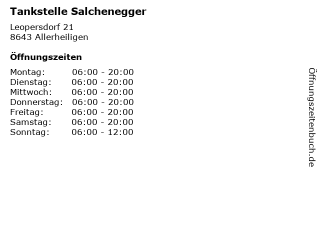 | Öffnungszeiten Tankstelle Salchenegger in Allerheiligen anzeigen | |