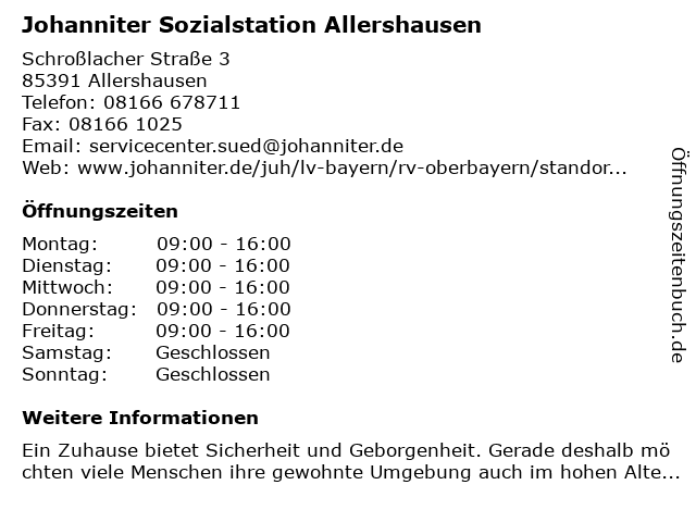 Branchen & Suchbegriffe zu Johanniter Sozialstation Allershausen:allershausen, gemeinnützige organisation, hilfsorganisation, johanniter, sozialarbeit, sozialstation, verband, wohlfahrtseinrichtung |